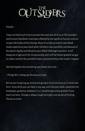 Metal Hellsinger was one of the more inspired experiences I’ve played in the past several years. Really sad to see a studio making genuinely quality games have to shutter.