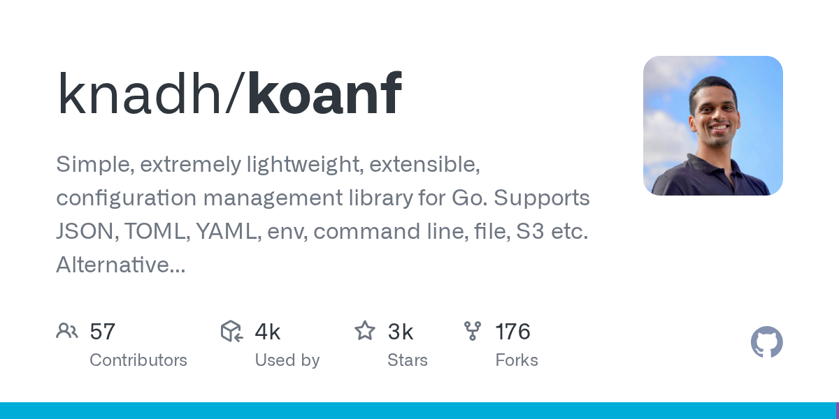 koanf is a library for reading configuration from different sources in different formats in Go applications (Golang)