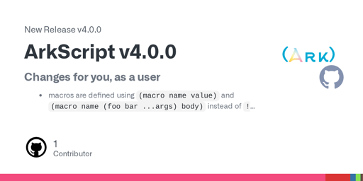 Finally, I have released this huge set of breaking changes that makes ArkScript v4, and I’m pretty proud of it. I won’t stop working on the language, however it’s a big milestone for me: I’ve reach a point where the language is more than decent to use every day, errors are correctly reported, and the documentation is pretty good too (I might be biaised, I wrote it myself so I don’t have an objective point of view): arkscript-lang.dev