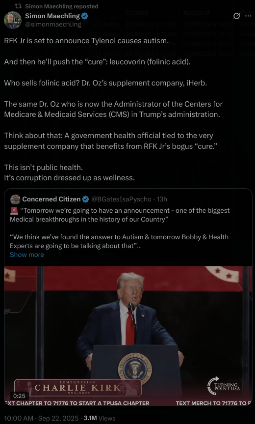 I keep forgetting to comment this, but does anyone else remember RFK jr setting a September deadline for “curing Autism”? Like, I remember it being a big deal at the time because that’s not really how science works. Right wingers tried to contrast it with Biden claiming he would find a cure for cancer, but he didn’t set himself an arbitrary deadline to make that happen.