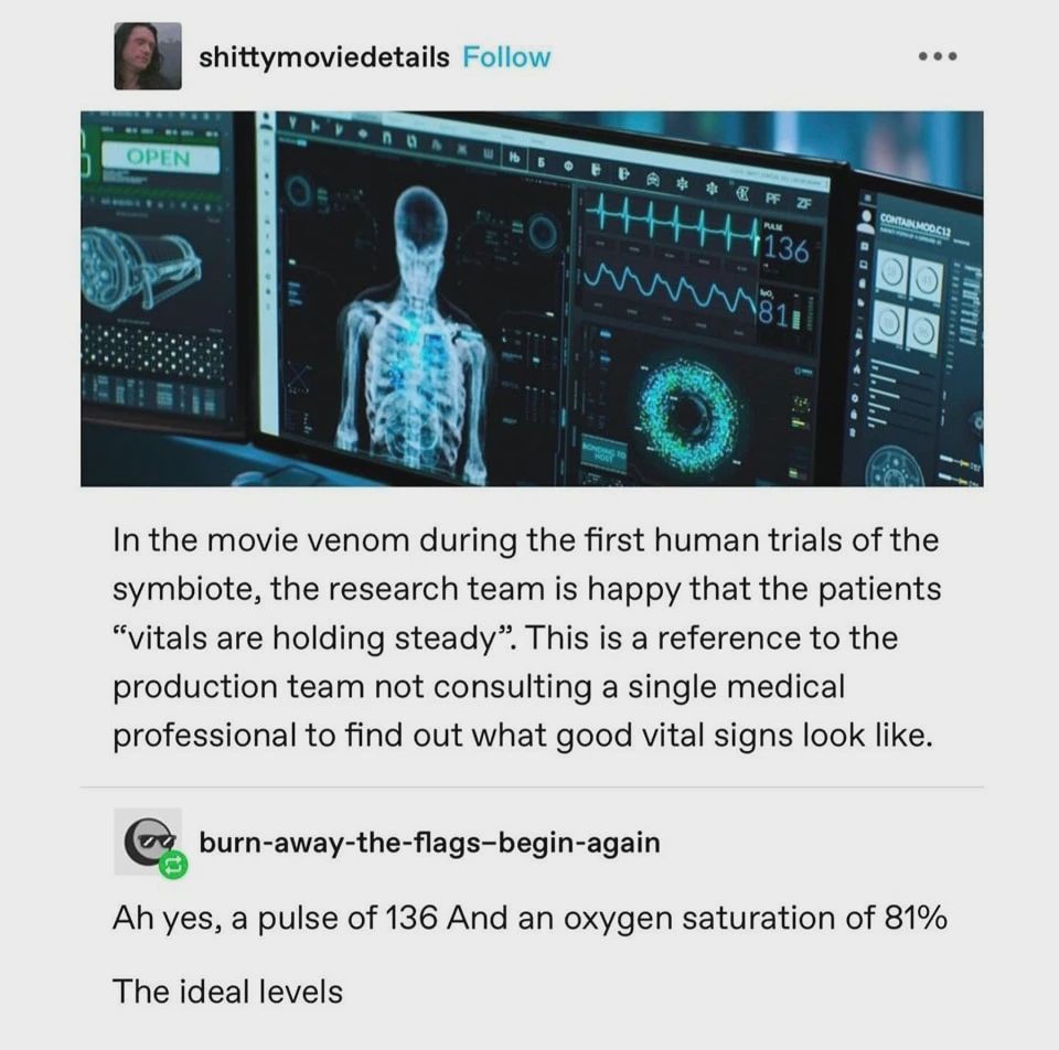 Yes, if the heart rate were 60, that would be a lot more suspicious. Even if the procedure hasn’t started yet, I’d expect the subject to be fucking scared. I don’t know if the O2 saturation makes sense for what’s happening, but it might. If your entire body is being taken over by a symbiote, any readings might be possible.