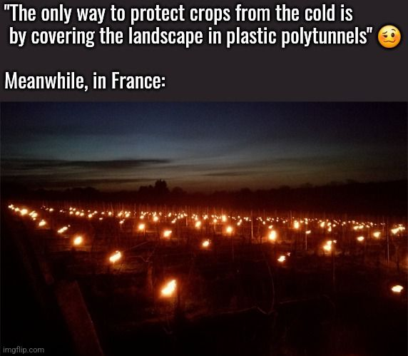 It’s actually not. We have entire regions covered with vines. We can’t wrap the whole France in plastic, it’s just not possible. But we can predict where it’s going to freeze and when, so we take such measures on very specific zones with precise timings. So this only happens a few times a year, at precise locations and not for long