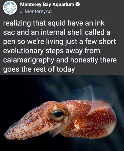 You know in middle school science they actually had us dissect a squid and attempt dip the pen into its ink and write with it. My group couldn’t seem to get it to work so one of the guys in the group just used to the pen to stab it in the eye and wrote with that instead.