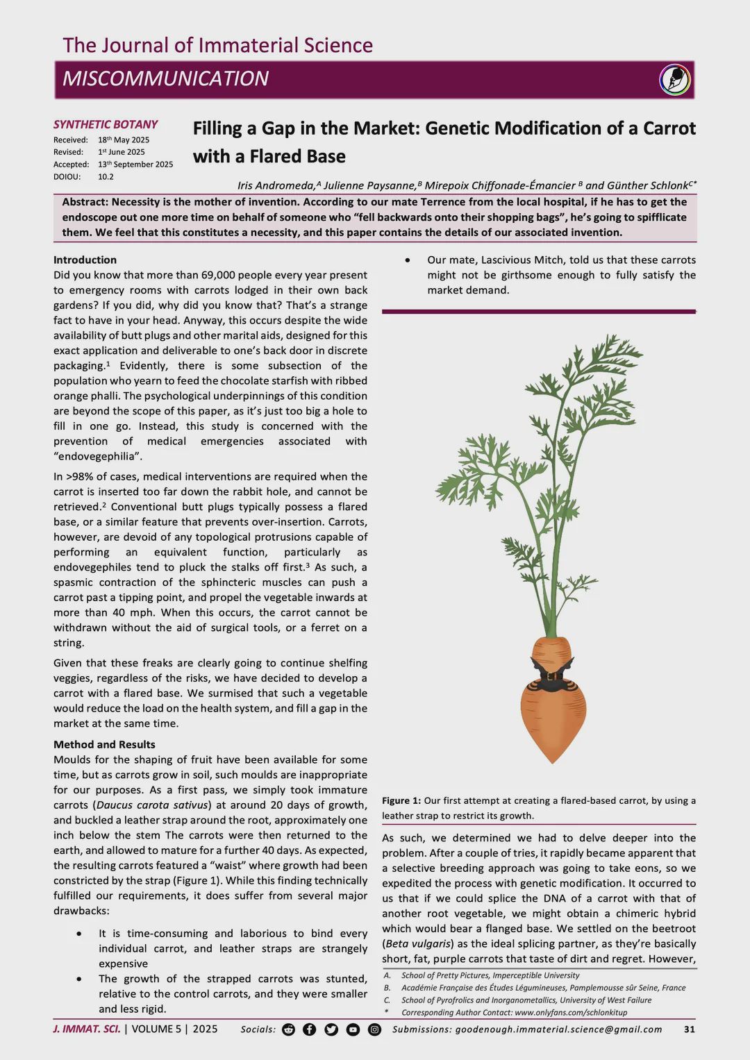 “Filling a Gap in the Market: Genetic Modification of a Carrot with a Flared Base”