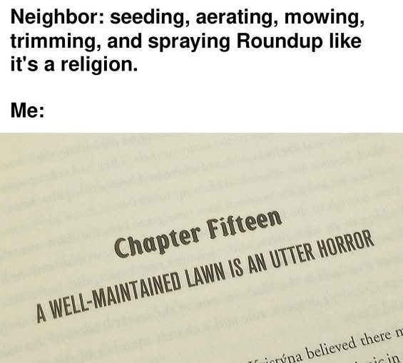 Growing a big, unproductive, biologically inactive lawn is basically saying “I have so many peasants I don’t need to grow vegetables” and then morphed into the quasi status symbol we have today for suburbanites to complain about each other’s while the planet dies around them.